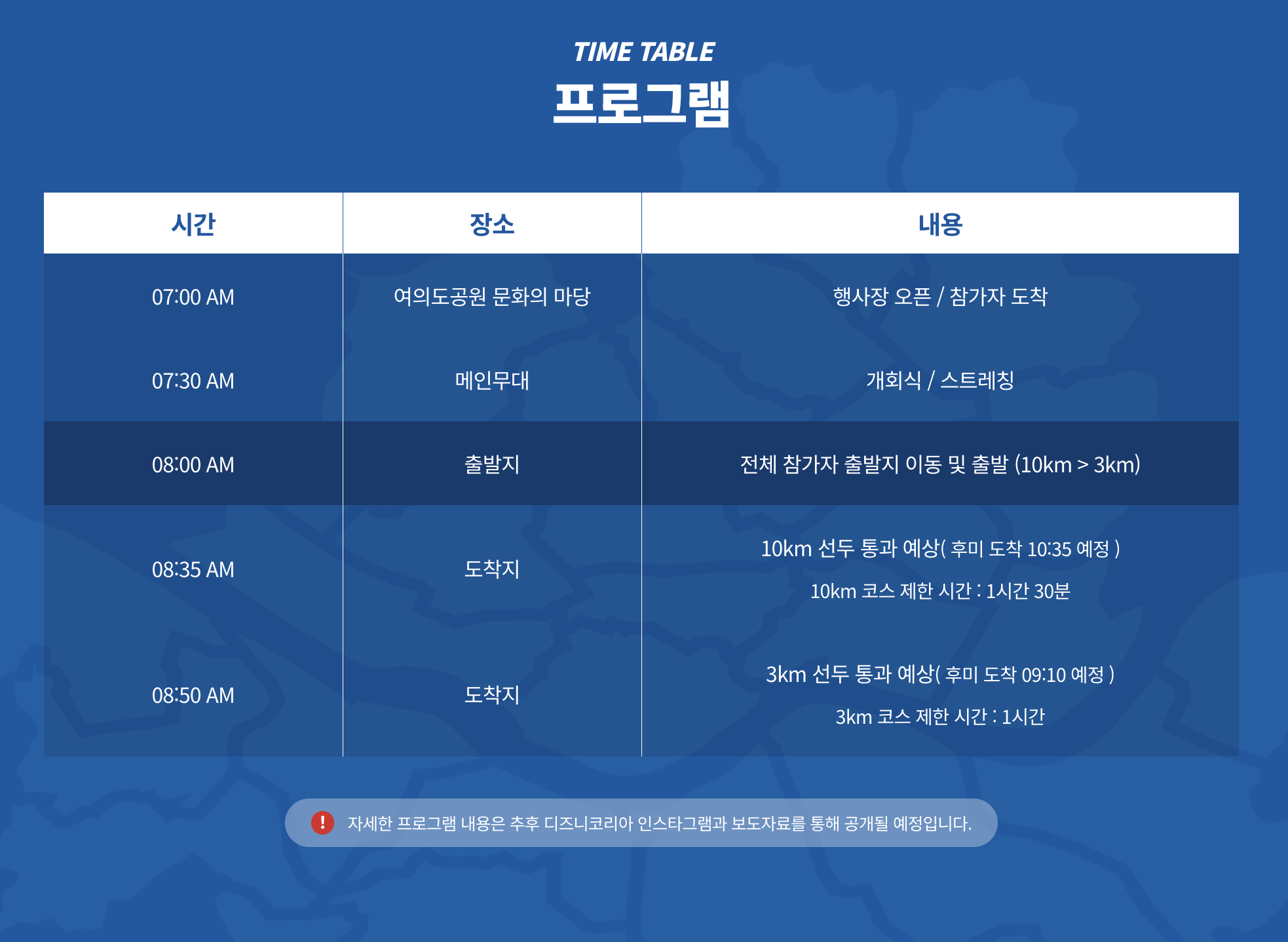 | 08:00 | 출발 지점 | 펀런 / 스프린트 출발 |